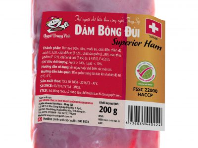 _ Thành phần: Thịt heo, gia vị._ Hạn sử dụng: 40 ngày._ Điều kiện bảo quản: Trong túi dán kín ở nhiệt độ 0-4°C (ngăn mát tủ lạnh)._ Đặc điểm: Sản xuất từ những khối đùi heo được chọn lọc kỹ, ướp gia vị và xông khói bằng dăm gỗ sồi thiên nhiên nhập khẩu […]